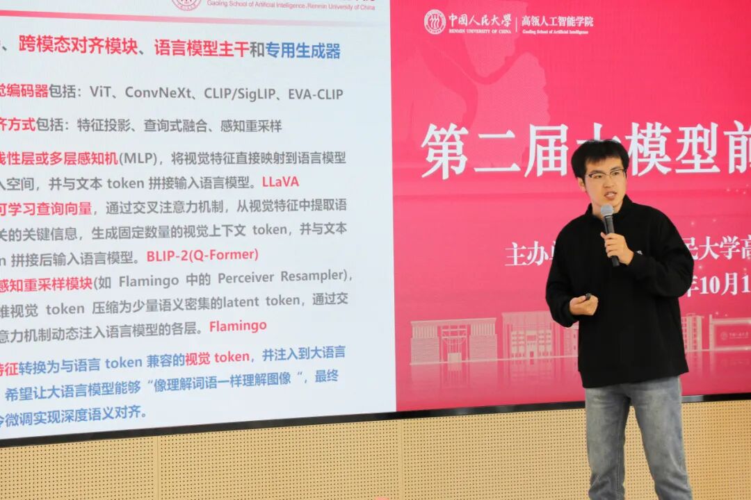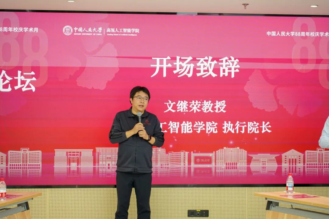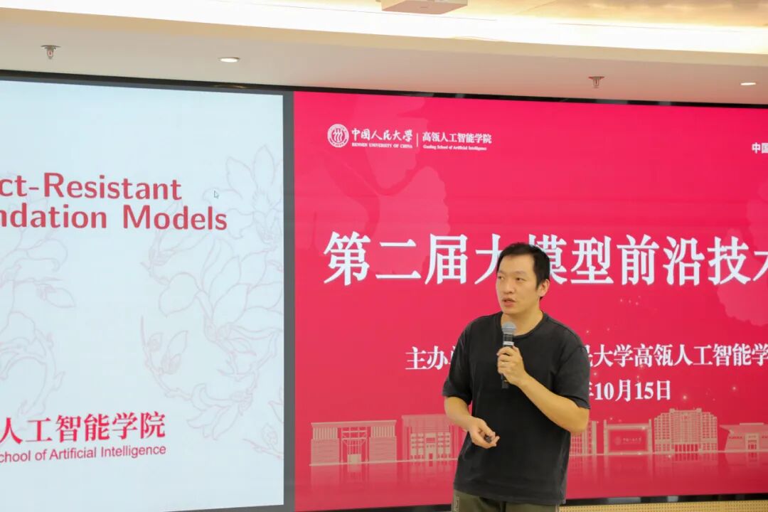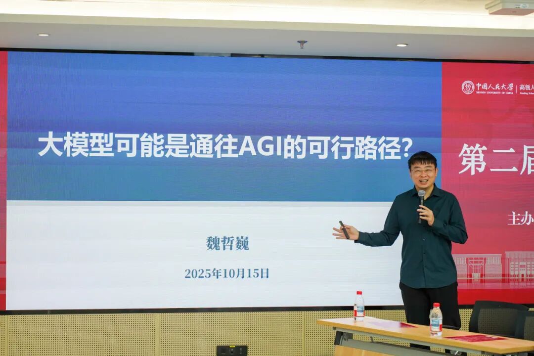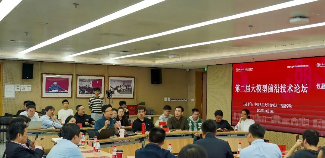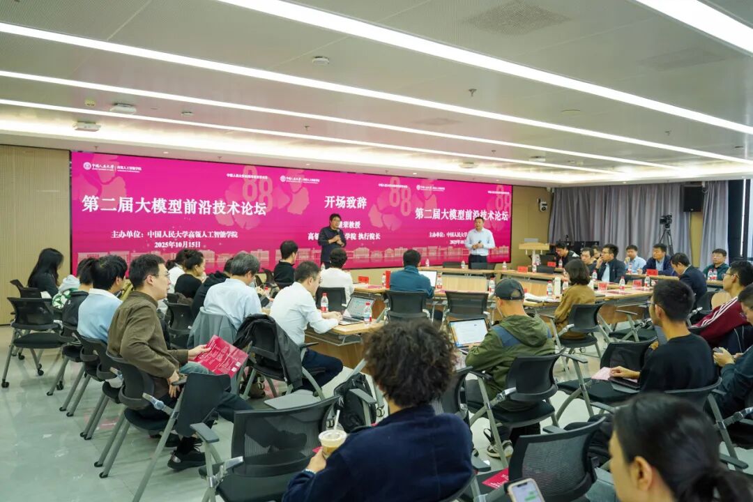 2025年10月15日,中国人民大学高瓴人工智能学院主办的第二届大模型前沿技术论坛在立德楼1826报告厅顺利举办。明理书院院长杜小勇出席讲座,高瓴人工智能学院执行院长文继荣等校内外十余位教师参加思辨研讨,150余名师生现场参会,会议由刘勇副教授主持。