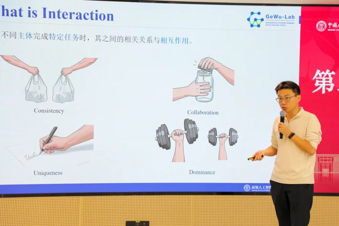 胡迪副教授介绍了其团队在多模态交互大模型方面的近期探索成果。他首先介绍了不同主体间的多种信息交互形式,并在信息论框架下概要讲解了如何对模态数据间的不同交互形式进行刻画与准确度量。进一步地,他对其中广泛关注的“冗余性”交互下的模态竞争,及其在泛化性和鲁棒性方面的恶化影响进行了介绍,并讲述了相应的解决方案。最后,他介绍了团队近期在面向高质量交互提出的全新多模态大模型微调范式MokA,并讨论和展望了未来多模态交互大模型的若干问题与期待。