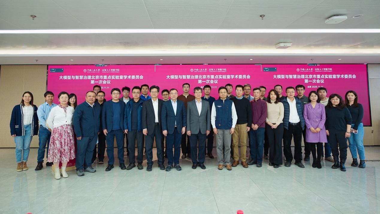 2025年11月11日,大模型与智慧治理北京市重点实验室(以下简称“实验室”)学术委员会第一次会议在中国人民大学立德楼召开。中国人民大学校长林尚立出席会议并致辞。会议由中国人民大学副校长王小虎和中国科学院院士、北京大学讲席教授、实验室学术委员会主任鄂维南共同主持。学校科学技术发展部副部长康琳,实验室主任、高瓴人工智能学院执行院长文继荣教授,以及来自国内知名院校和科研机构的40余位专家学者通过线上线下方式参加会议。