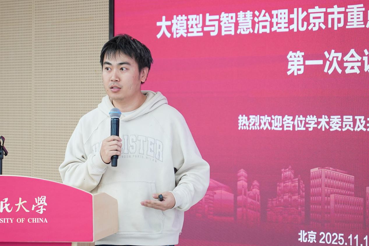 文继荣在汇报中详细阐述了实验室的战略定位与阶段性研究进展。实验室自2024年12月成立以来,紧扣国家战略需求扎实推进科研布局,目前已在关键技术领域取得多项重要突破,成功研发“玉兰-LLaDA”、AI深度搜索引擎 WebThinker、“玉兰-万象”多智能体社会模拟平台、涉外法治大模型等核心成果。同时,实验室积极联动联通、百川智能等企业开展联合共建,加速 AI 技术在多场景的落地应用。未来,实验室将持续聚焦大模型基础理论和技术研究,深化产学研用协同创新体系建设,为学校智慧治理研究提质增效,为北京市科技高质量发展注入新动能。
