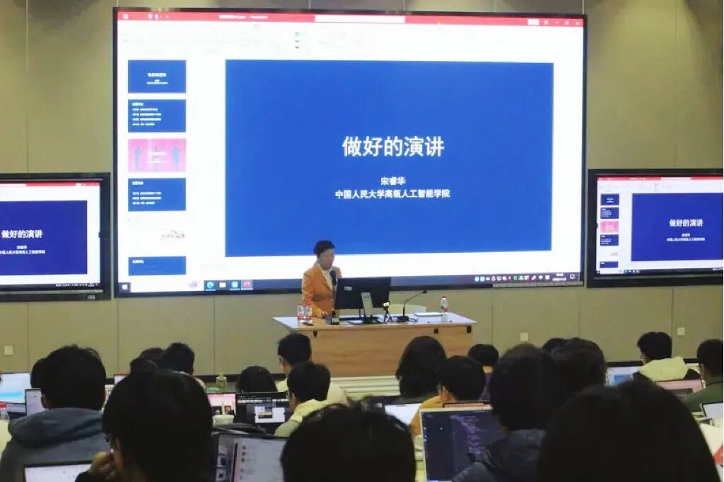 11月5日,由中国人民大学高瓴人工智能学院与教务处联合举办的“本科生科研领航”系列讲座2025年第二讲在公共教学一楼1602教室举行。高瓴人工智能学院宋睿华长聘副教授以“做好的演讲”为题,为百余名本科生带来了一场生动且富有启发性的讲座。