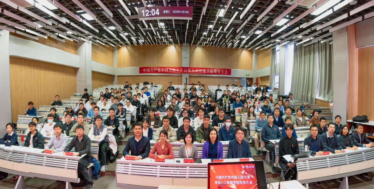 2025年11月19日,中国共产党中国人民大学高瓴人工智能学院党员大会召开。学校党委组织部有关同志和片区组织员出席会议,高瓴人工智能学院执行院长文继荣,副院长窦志成、魏哲巍列席会议,高瓴人工智能学院134名师生党员参加会议,学院党委副书记、纪委书记张育铭主持会议。