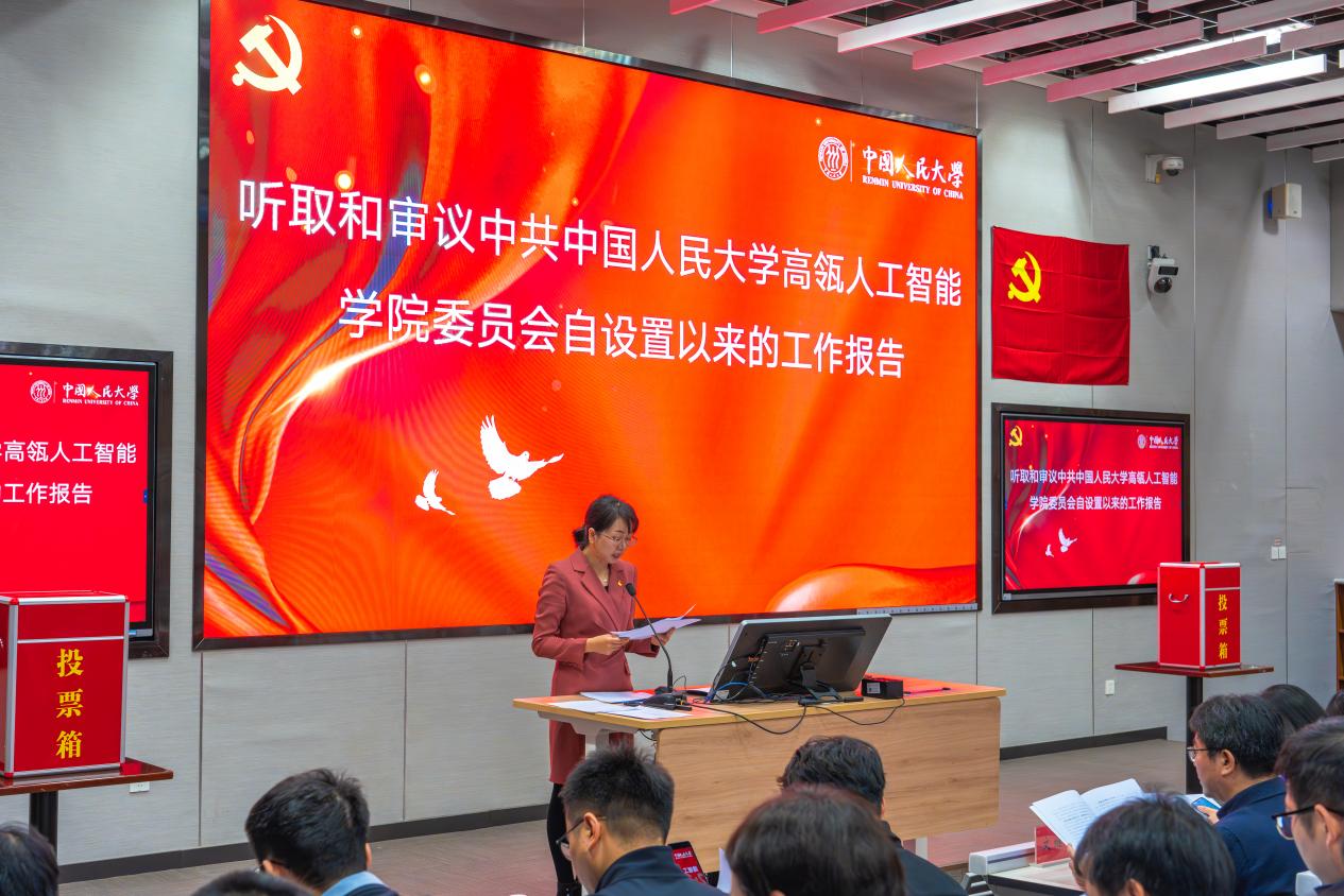 大会表决通过了《中共中国人民大学高瓴人工智能学院党员大会选举办法(草案)》,中共中国人民大学高瓴人工智能学院委员会、纪律检查委员会委员候选人名单,监票人、总监票人名单,宣布了计票人名单。