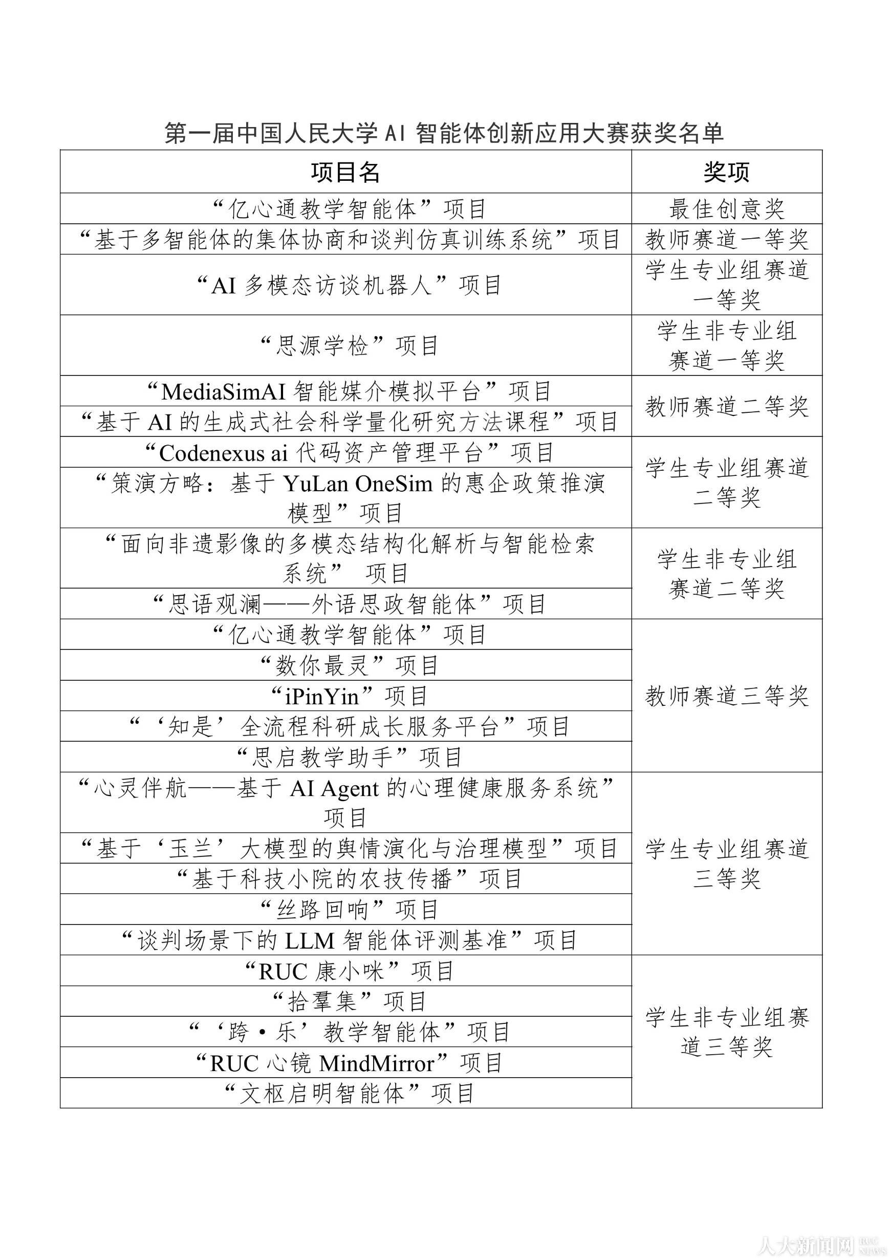 12月6日,第一届中国人民大学AI智能体创新应用大赛决赛举行。