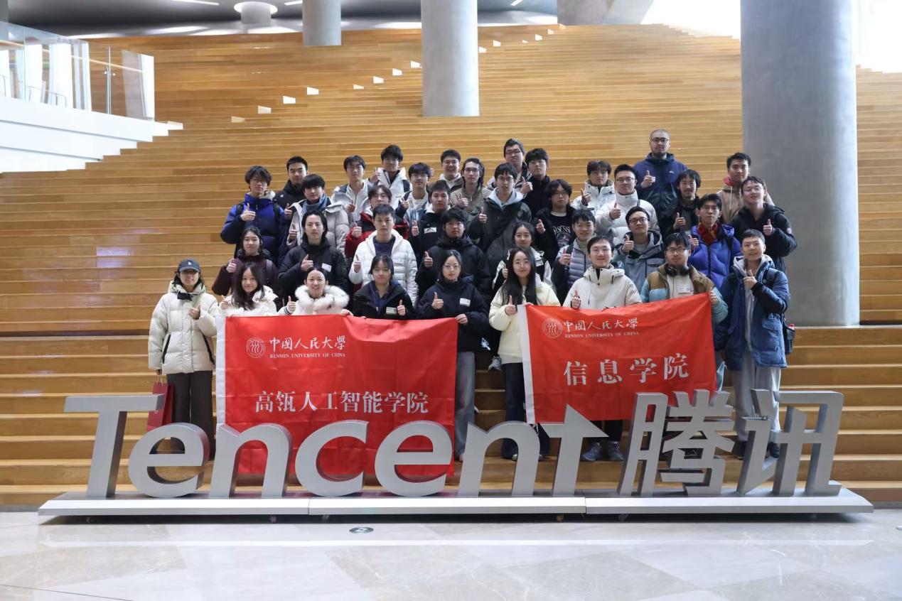 为响应学校创新人才培养号召,深化产教融合,实现实践教育、专业教育与就业教育有机融合,不断开拓就业创业机会,2025年12月10日,中国人民大学高瓴人工智能学院与信息学院组织40余名同学走进腾讯北京总部大楼,开展深度企业参访活动。