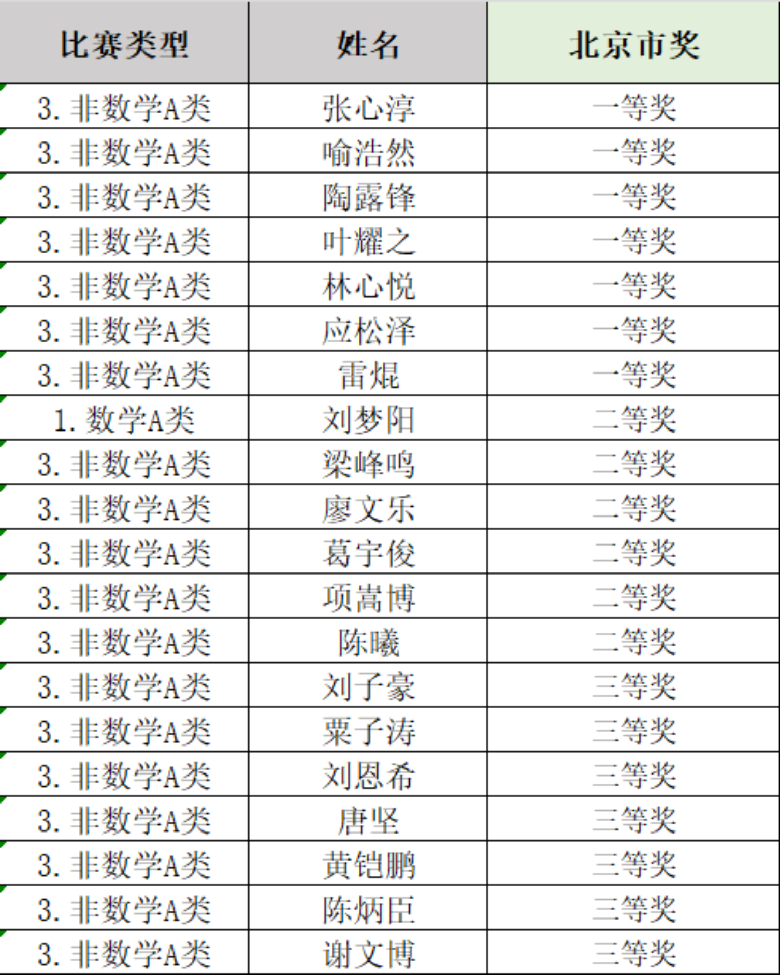 2025年中国人民大学共380名参赛学子(其中数学类A类89人、非数学A类143人、非数学B类148人)在省级初赛中斩获佳绩:数学A类7人获北京市一等奖、17人获北京市二等奖、18人获北京市三等奖;非数学A类21人获北京市一等奖、22人获北京市二等奖、29人获北京市三等奖;非数学B类27人获北京市一等奖、16人获北京市二等奖、17人获北京市三等奖。