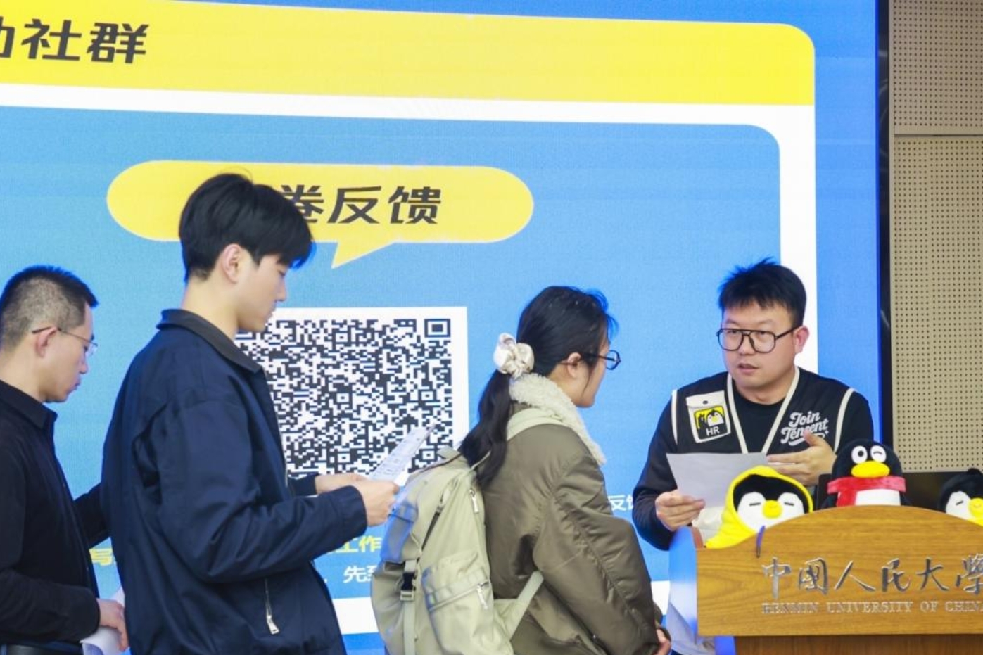 3月18日,中国人民大学高瓴人工智能学院联合腾讯公司在立德楼1826报告厅举办职业“瓴”航就业宣讲会-腾讯专场。本次宣讲会面向全校学生开放,腾讯四大事业线嘉宾来到现场,为250余名学生带来深度求职分享。