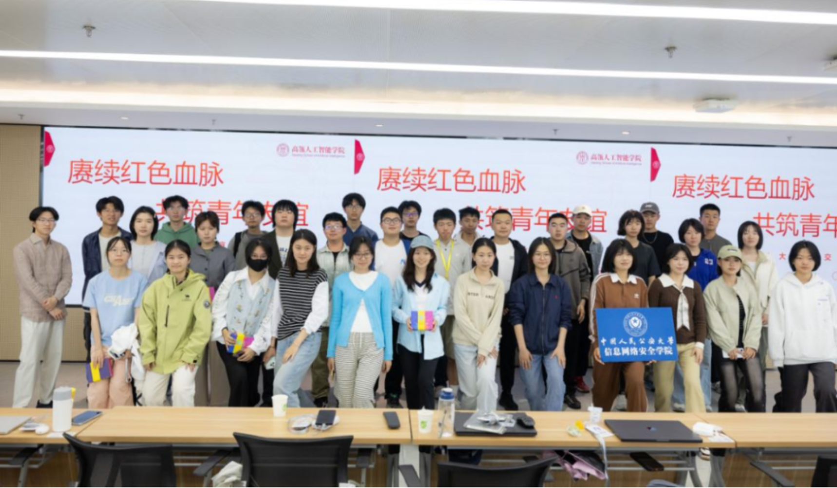 4月12日,中国人民大学高瓴人工智能学院与中国人民公安大学信息网络安全学院在立德楼1826联合举办“赓续红色血脉,筑牢安全防线”主题联学共建活动。两院师生齐聚一堂,通过主题分享、专业研讨等形式,深入学习校史党史,交流网络空间安全领域前沿技术。活动由高瓴人工智能学院学生会文艺部骨干刘晓权主持。