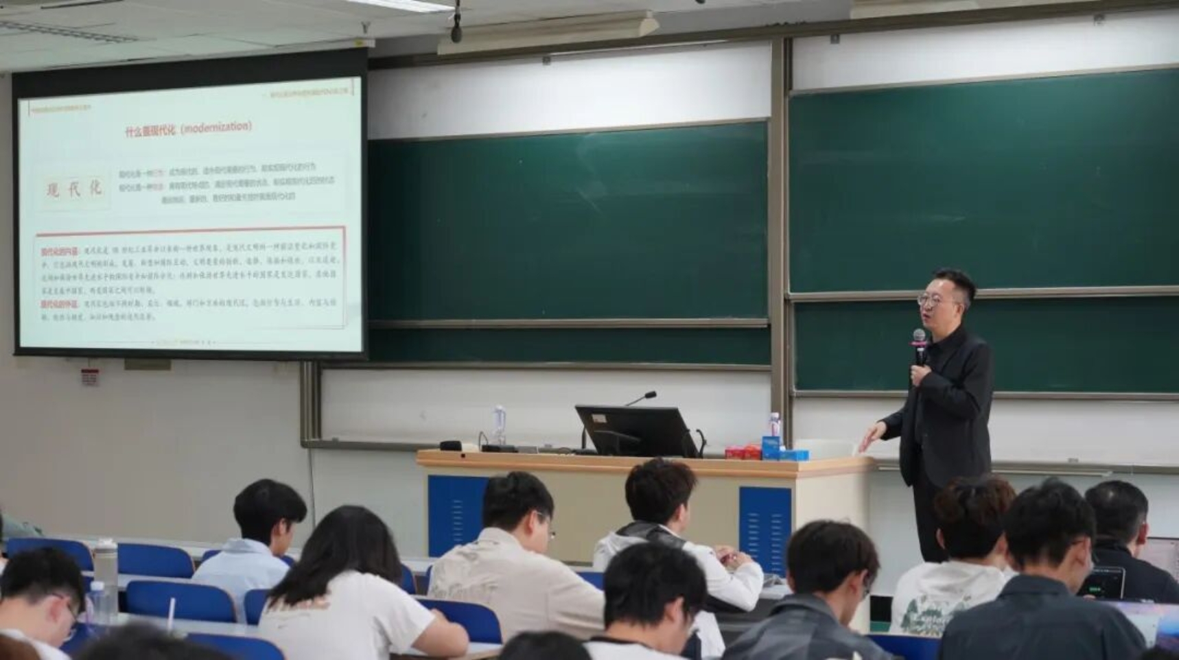 随后,张智教授结合党的二十大、二十届四中全会战略部署,详细解读中国式现代化的宏伟蓝图,重点分析“十五五”时期作为基本实现社会主义现代化关键攻坚期的战略意义。他强调,理工科学生要深刻认识当前科技革命与产业变革带来的机遇与挑战,在扎实学习专业知识的同时,务必加强理论学习,涵养理论思维。